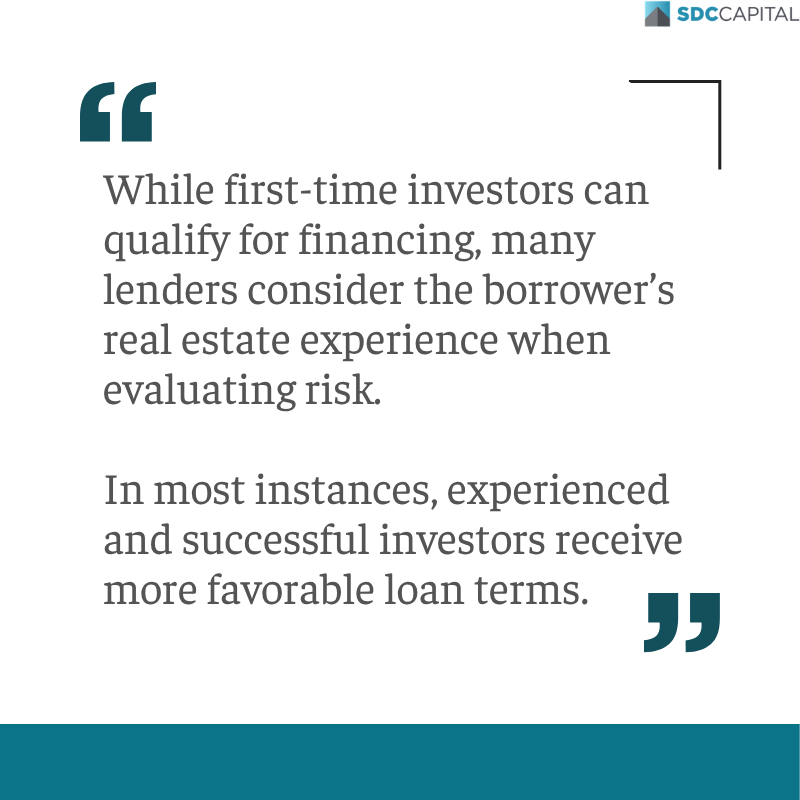 While first-time investors can still qualify for financing, many lenders consider the borrower’s real estate experience when evaluating risk.