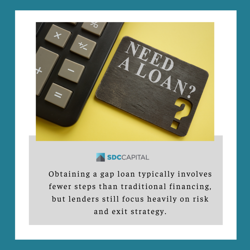 Obtaining a gap loan typically involves fewer steps than traditional financing, but lenders still focus heavily on risk and exit strategy.